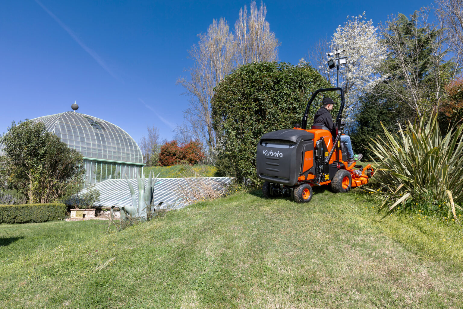 The 4WD ensures maximum traction on sloping terrain. The differential lock allows to quickly react to prevent wheel slip or damage the turf.